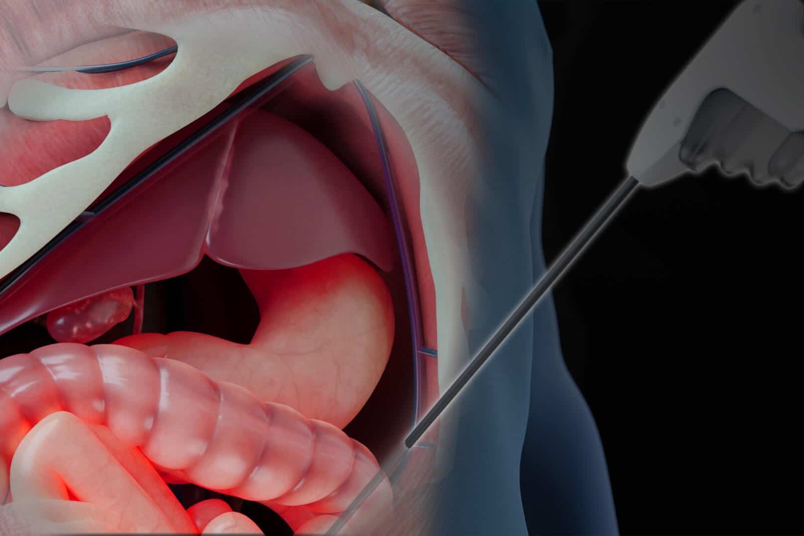Using high-contrast color to show the exact location of tears, fractures, or internal organ damage.