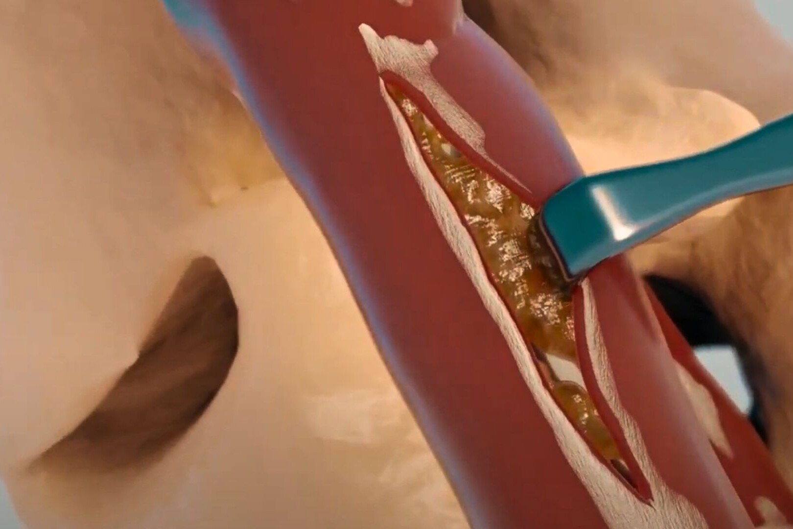 Using transparency and cut-away views to show events that occur inside the body during surgery.